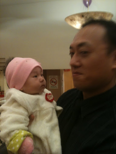 跟阿伯先拍一張照片..